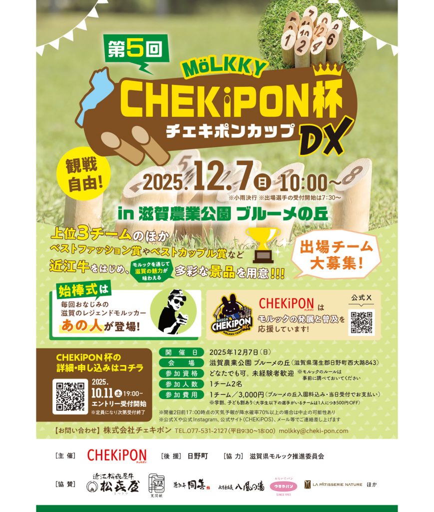モルック大会【第5回チェキポンカップ】は、2025年12月7日(日)、場所はいつもの「ブルーメの丘」にて開催します!