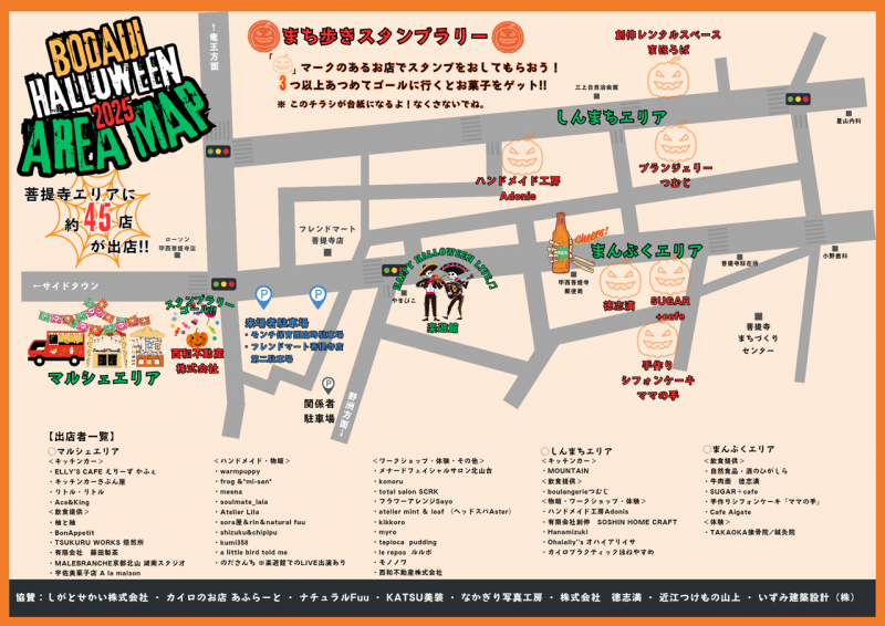 キッチンカーやハンドメイドのお店、ワークショップ、LIVE演奏などワクワクがたくさん用意されています。まさに、菩提寺の街全体で楽しむハロウィンです。