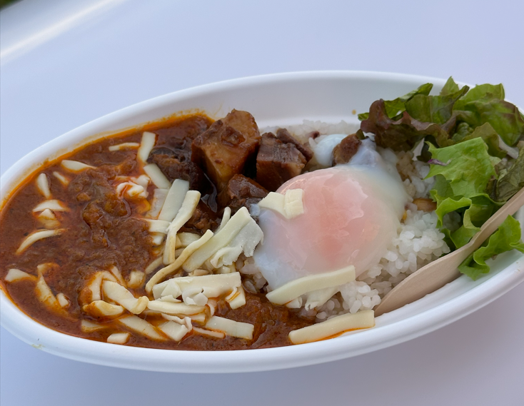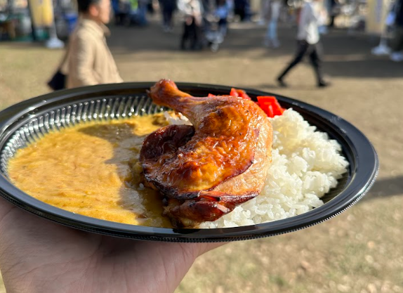 イベントの開催場所である「ブルーメの丘」からは、ローストチキンの乗ったインパクト抜群のカレーが登場!