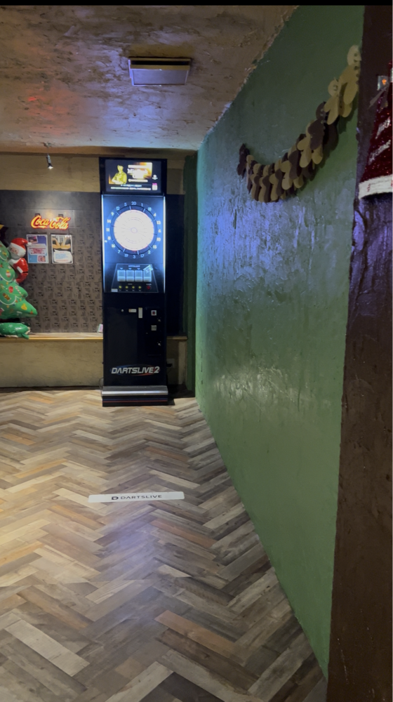 お店の入口から入ってすぐにはカウンターと、ダーツで遊べるスペースがあります。