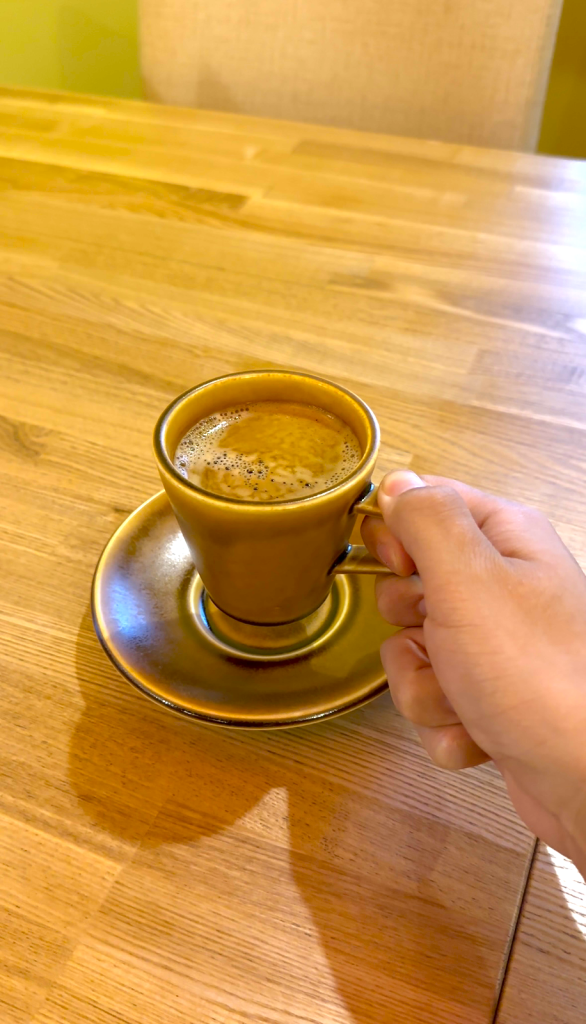 ピッツァとパスタでお腹いっぱいになったら食後のコーヒーを飲みながら