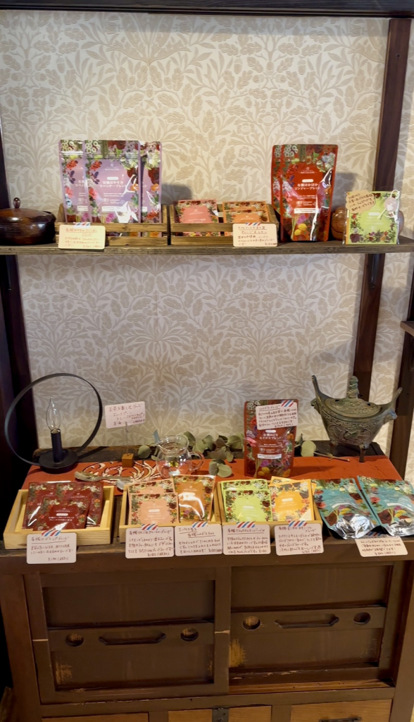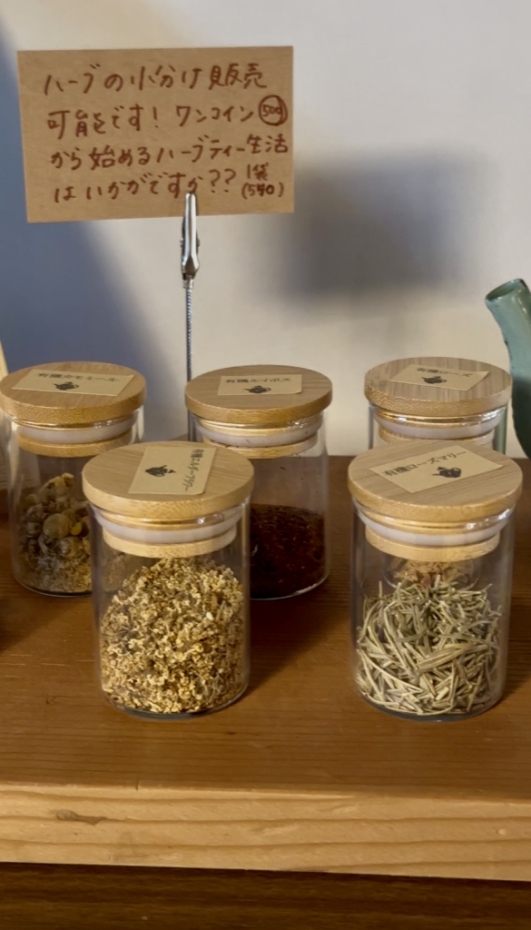 お家でもお店のハーブティーを楽しんめるようにと、ハーブやティーパックを販売しています。特にハーブは小分けが可能で、ワンコインからハーブティー生活を始めることができるそうです。
