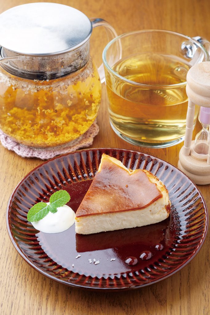 米粉のお菓子も期間限定から定番まで幅広く用意。写真の「酒かすチーズケーキ」は、地元・愛荘町の米粉と酒粕を使って作る人気のおやつだそう。