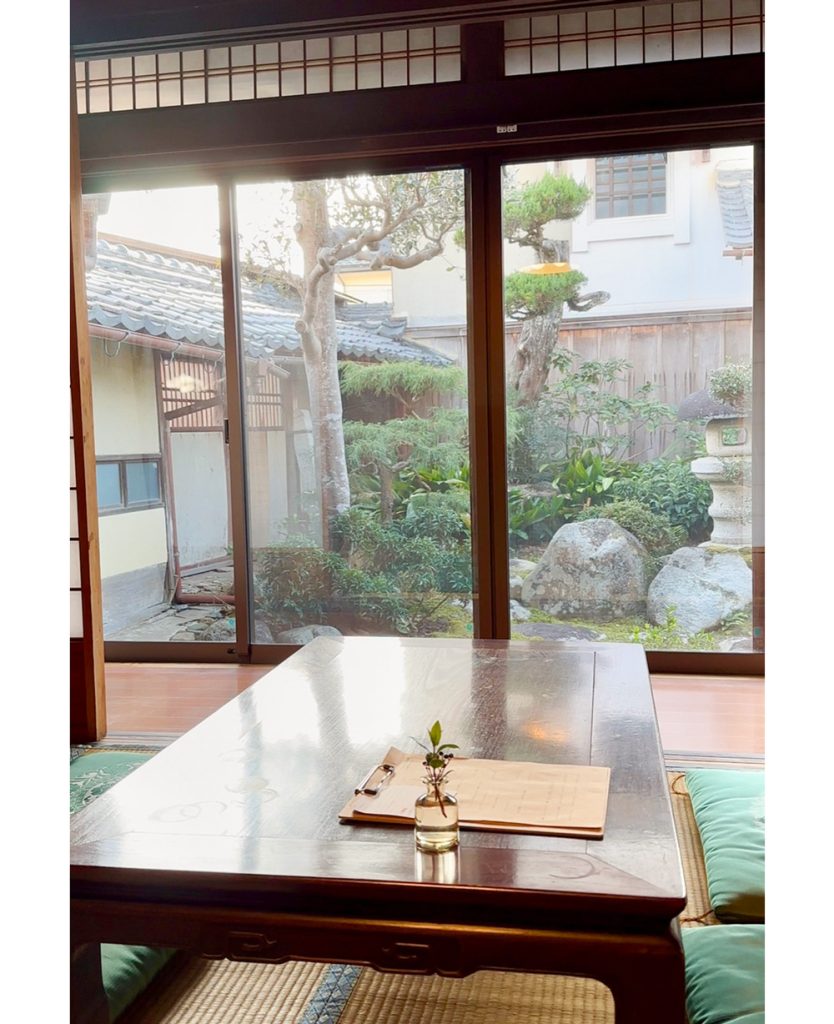 扉を開ければ目の前に広がるのは和の空間。椅子のテーブル席やゆったり座れる座敷タイプの席もあります。