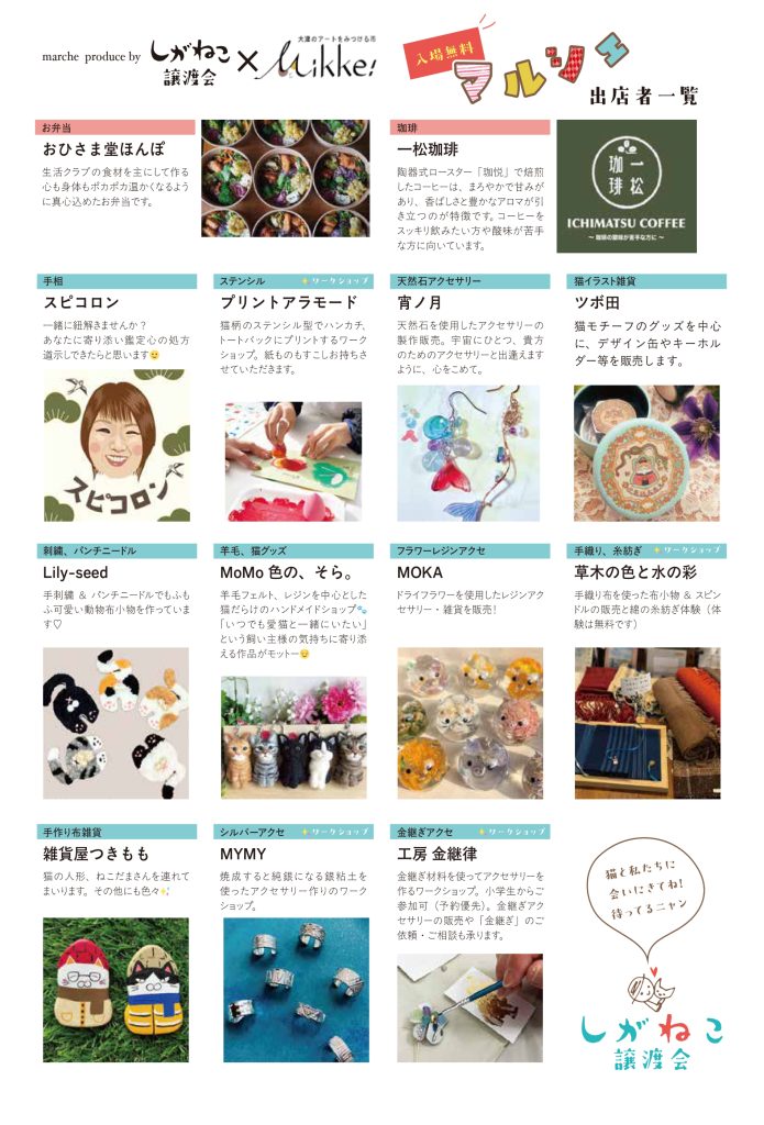 ■しがねこ譲渡会のマルシェ参加店はこちら